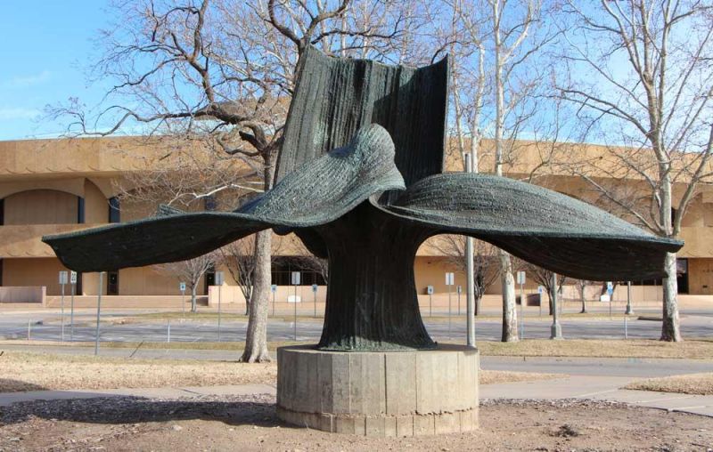 In 1972, the Department of Parks and Recreation of the City of Wichita acquired downtown riverfront land from the federal Urban Renewal Agency and used it to create a civic green space. Bertoia’s sculpture, like the name of this new park, honors A. Price Woodard, who was the first African-American mayor of Wichita. It was installed on a circular concrete base and nearby a separate plaque on an additional concrete base was included, its inscription reading: “Sculpture by Harry Bertoia. This work of art is dedicated to A. Price Woodard. Mayor of Wichita, Attorney, Member of the Board of Education, and Humanitarian. A. Price Woodard was a friend of all and gave his community a free and open spirit.” Given the title “Interrupted Flight,” it was the last large-scale sculpture Bertoia made using the technique of fused-copper tubing and bronze welding rods. It remains in the downtown park, while the Wichita Art Museum owns the maquette.
